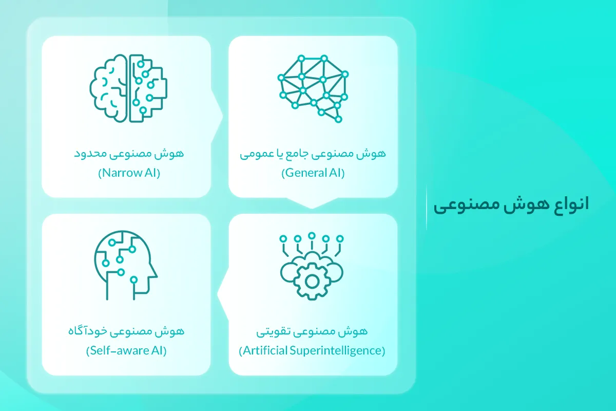 هوش مصنوعی به‌طور کلی در چندین دسته‌بندی مختلف تقسیم می‌شود که هرکدام کاربردهای ویژه‌ای دارند. در اینجا به معرفی مهم‌ترین انواع هوش مصنوعی می‌پردازیم: